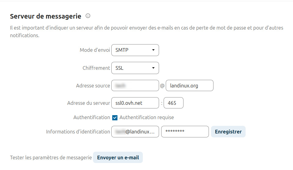 Dans un premier temps, nous configurons les envois d’e-mail via un relay SMTP, nous aborderons l’utilisation d’un serveur Postfix local ultérieurement (ou pas).